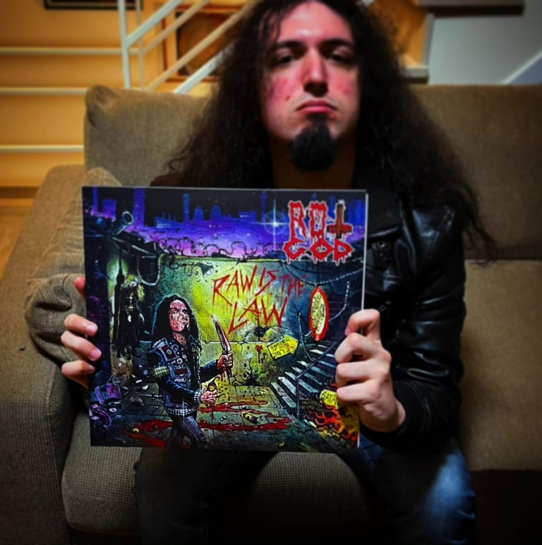 The cover art made by Claudio Elias Scialabba (who previously worked with Bünker 66, Tsubo and One Day in Fukushima), while based on the oh-so-rough sketch I had pitched almost three years prior, is immediately striking in its visual impact and richness in detail (validating the 12" format for the physical edition), and instantly caught the audience's attention towards a record that managed to garner hundreds of streams within a few months, going far beyond any past Rotgod release. Title-track "Raw is the law" instantly became my most streamed track on Spotify, catching the interest of listeners from countries renowned for their historical background in underground extreme metal such as Colombia, Germany and Brazil.
