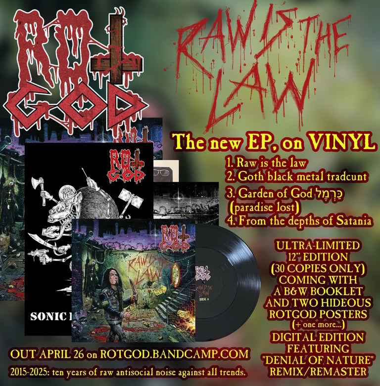 Non poteva esserci nessun miglior momento di questa ricorrenza, per pubblicare finalmente l'aggressivo e radicale EP "Raw is the law", registrato nei due anni precedenti insieme a "Polemics and obscenity": una vera e propria summa del manifesto artistico-ideologico di questo progetto, fedele fin dagli inizi all'underground estremo degli anni '80, in contrapposizione ai trend della moderna "scena" pseudo-underground di cui il testo della title-track (valorizzato da un brillante lyric video) fa piazza pulita, insieme alla dissacrante "Goth black metal tradcunt" che ironizza con estrema cattiveria sul cosiddetto filone "romantic black metal" (rappresentato da realtà come Këkht Aräkh, Draugveil e il Sentiero dei Principi) e i ragazzini che ne costituiscono la fanbase.