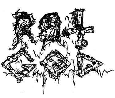 Disegnai il primo schizzo del logo sui banchi di scuola, ai tempi del quinto liceo. Poi nel 2018, quando avevo già iniziato a registrare l'album "Sonic degeneracy", presentai un bozzetto del logo in versione più o meno "ripulita" a Onìkarus, che fu subito in grado di dargli l'impatto grafico di cui aveva bisogno, a metà tra logo grind "lercio" e logo thrash "affilato" stile Attomica, con l'aggiunta del solito tocco antireligioso rappresentato dal crocifisso capovolto, dal quale spuntano una codina e due corna a ricordare sempre chi c'è dietro a tutto.