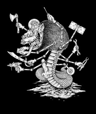 When it comes to my work as Rotgod, I've always tried to keep as much of a "do it yourself" mentality as possible, in order to maintain maximum creative control over the project. There was a thing I couldn't really master by myself, though: the artworks. I had many ideas, but couldn't execute them properly due to my piss-poor drawing skills: that's why I got in touch with Onìkarus, who was able to turn the concepts in my head into proper artworks.