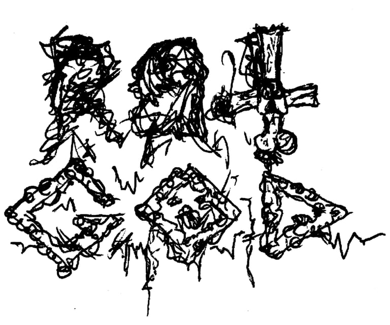 I drew the first sketch for the logo on my school desk, during my final high school year. Then in 2018, when I already was in the midst of recording the "Sonic degeneracy" album, I presented a somewhat "cleaned up" sketch to Onìkarus, who was instantly capable of giving it the visual impact it needed, halfway between "filthy" grind-style logo and "sharpened" thrash-style logo in the vein of Attomica - plus the usual anti-religious touch in the form of an inverted crucifix, from which you can see a tail and two horns emerging, reminding us of who's behind it all.